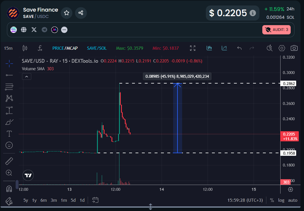 Kısa süre önce atılan bu adım neticesinde ise SAVE fiyatında yükselişler başladı. Yakım ile birlikte dakikalar içerisinde %50’lik bir sıçrama yapan SAVE, yatırımcıların dikkatini çekti.
