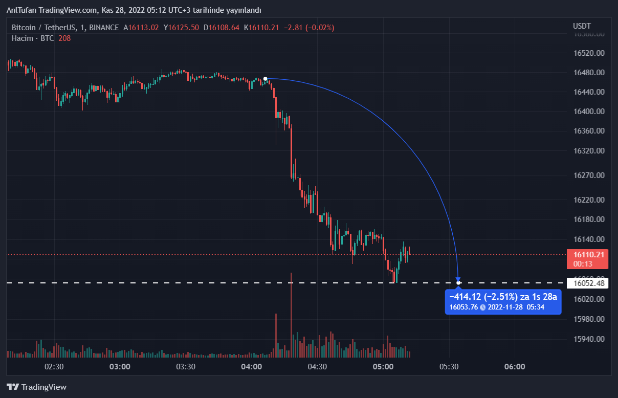 Son dakikalara baktığımızda Çin’den ve Bahamalardan gelen kötü haberler lider kripto para birimi Bitcoin‘in (BTC) 16 bin dolar desteğine kadar gerilemesine neden oldu.