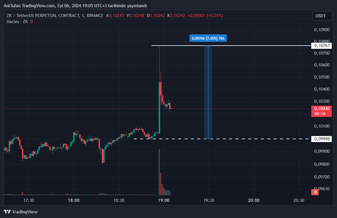 Son dakikalarda gelen bu listeleme hamlesi sonrasında ZK fiyatında yukarı yönlü hamleler meydana geldi. Kısa bir süre içerisinde %8’lik bir sıçrama yapan ZK, piyasadaki satış baskısından ötürü yükselişlerini devam ettiremedi.