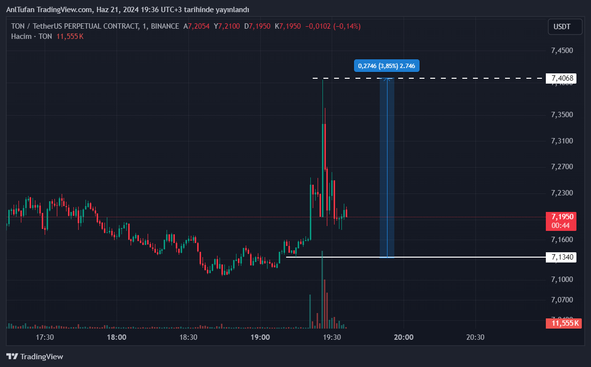 Bu gelişmeler ile birlikte TON isimli altcoin Binance vadeli piyasada %4’lük bir sıçrama gerçekleştirmiş olsa da, kötü piyasa şartları nedeniyle TON’un yükselişlerini koruyamadığı görüldü.