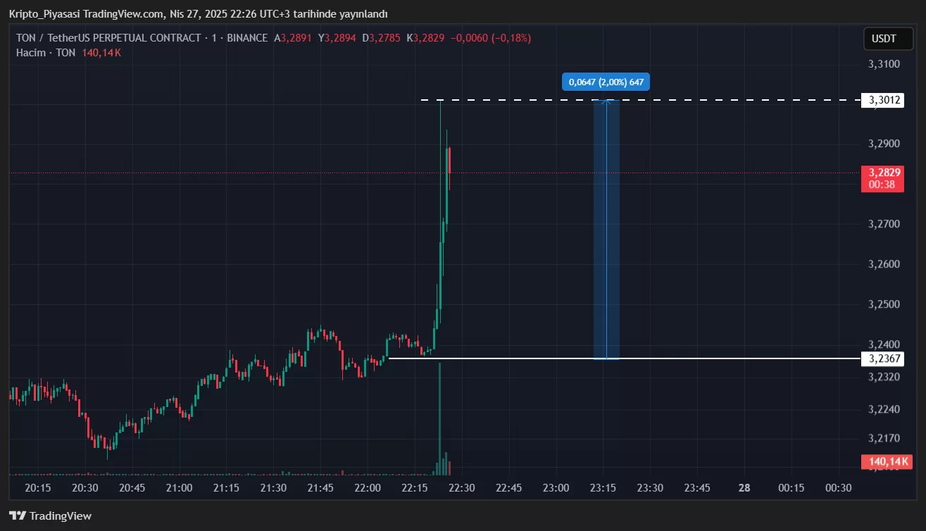 Elon Musk’ın Durov’u takip etmesiyle birlikte TON’a ilginin arttığı görüldü. Piyasa değerine göre en büyük altcoin’lerden olan TON, bu son gelişme neticesinde %2’lik bir sıçrama yaşadı.