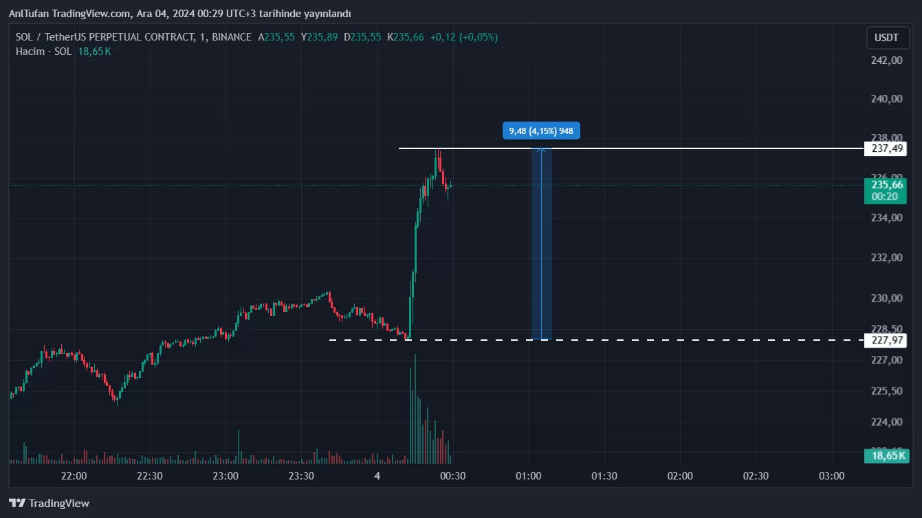 Son dakikalarda Grayscale’in spot SOL ETF başvurusu, Solana’da yükseliş getirdi. %4’lük bir sıçrama gerçekleştirmeyi başaran SOL, dikkatleri üzerine çekti.