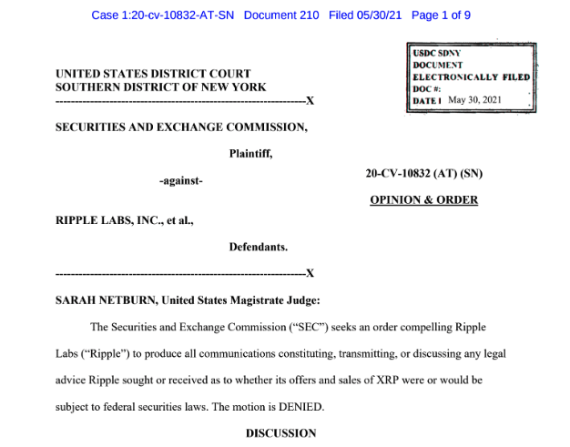 SEC ve Ripple arasındaki yasal mücadelede önemli bir karara daha imza atıldı.