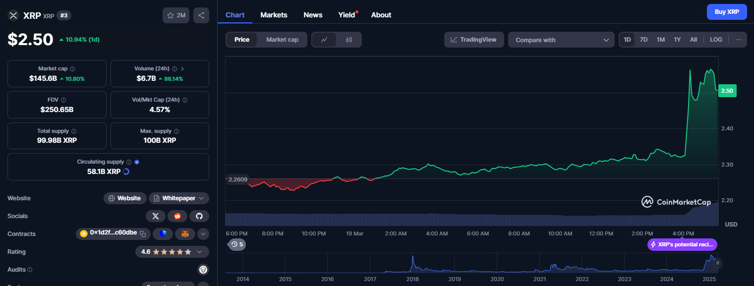 Bu yükselişler ile birlikte %10’dan fazla değer kazanmayı başaran XRP, 2.59 dolar seviyelerini gördü. Her ne kadar XRP an itibariyle 2.50 dolardan işlem görüyor olsa da, halen bullish trendine devam ediyor.