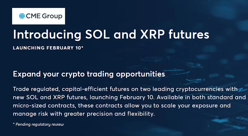 Kısa bir süre önce gelen bilgilere göre Ripple (XRP) ve Solana (SOL) için CME vadeli ETF gelişmeleri hızlanmaya başladı. CME dakikalar önce subdomainlerine XRP ve SOL vadeli işlemlerinin 10 Şubat tarihinde başlayacağına dair bir sayfa ekledi.