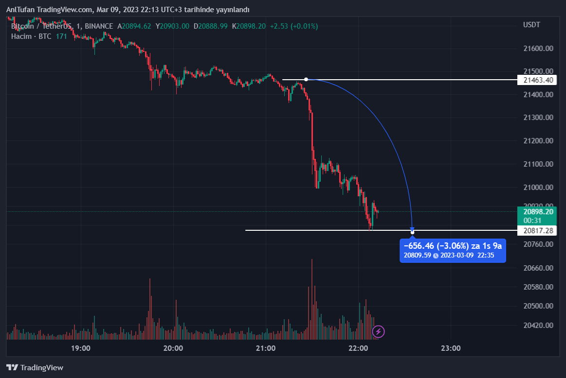 SEC başkanı Gensler’in yukarıdaki açıklamalarının ardından sonra ise Bitcoin’in 20.800 dolar seviyelerine kadar yüzde 3’lük bir düşüş yaşadığı görüldü.