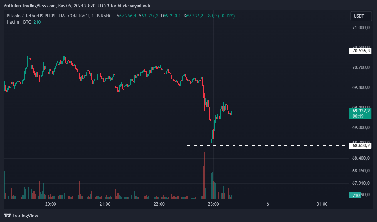 Kamala Harris hakkında çıkan söylentilerin sonucunda düşüşe geçen Bitcoin (BTC), dakikalar önce 68.650 dolar seviyelerine kadar geriledi.