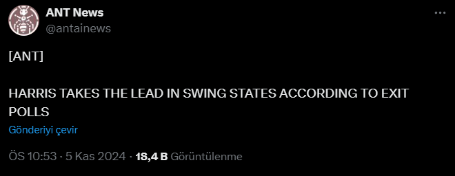Kısa bir süre önce Kamala Harris’in bazı kritik eyaletlerde önde olduğu iddia edildi. Şuan itibariyle bu iddiaların net bir karşılığı olmasa da, kripto piyasası söylentilerden dahi etkilenir duruma geldi.