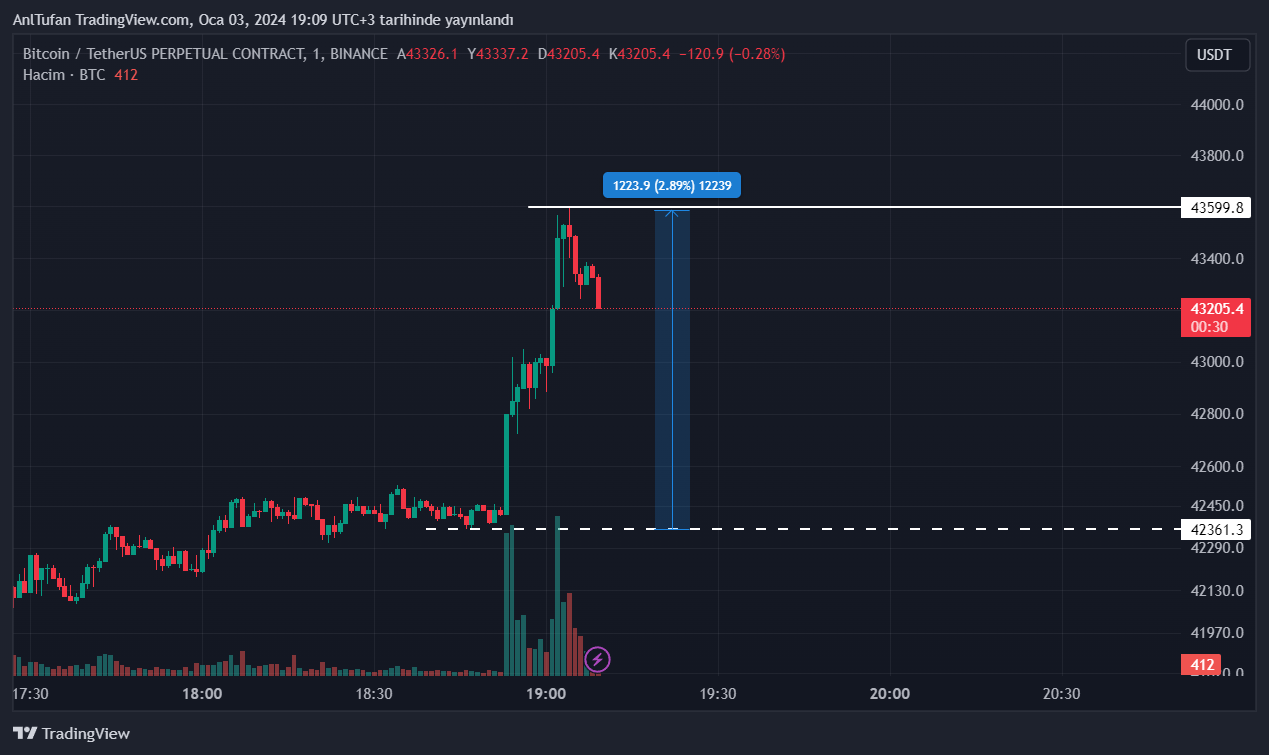 Bu son gelen haber ile birlikte Bitcoin’in (BTC) çok kısa bir süre içerisinde %3’e yakın bir yükseliş yaşadığı gözlemlendi.