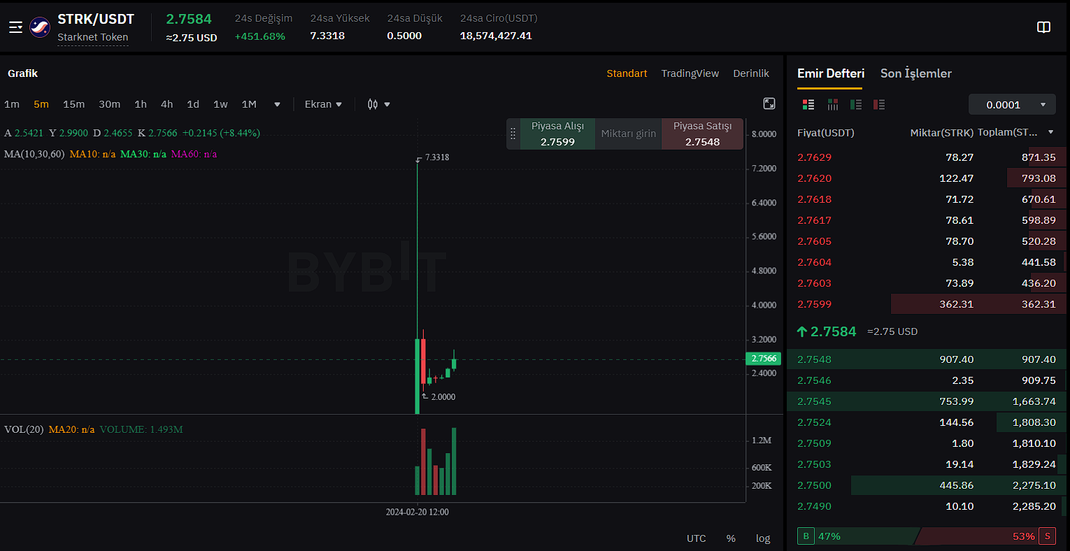 Bugün itibariyle kripto para sektörünün ana gündem maddelerinden bir tanesi olan Starknet (STRK), kısa bir süre önce çıkış yaptı. An itibariyle Bybit borsasında işlem gören STRK, ilk çıkışıyla yatırımcıların dikkatini çekti.