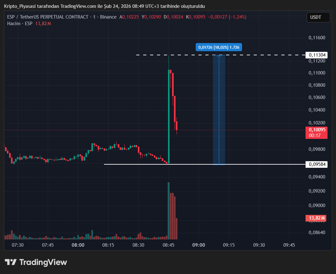 Bithumb’ın listelemesi sonrasında Binance‘de de var olan Espresso (ESP), ani yükseliş yaşadı. ESP son dakikalarda listeleme sonrasında ise %18’lik bir artış gerçekleştirdi.