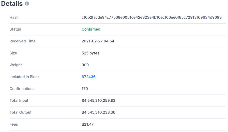 Bu devasa işlemi ilk olarak ortaya çıkaran ise, otomatik defter izleyici BTC blok botu oldu. Transferi 21 dolar karşılığında tek kalemde 103.510 BTC harekete geçirildi.