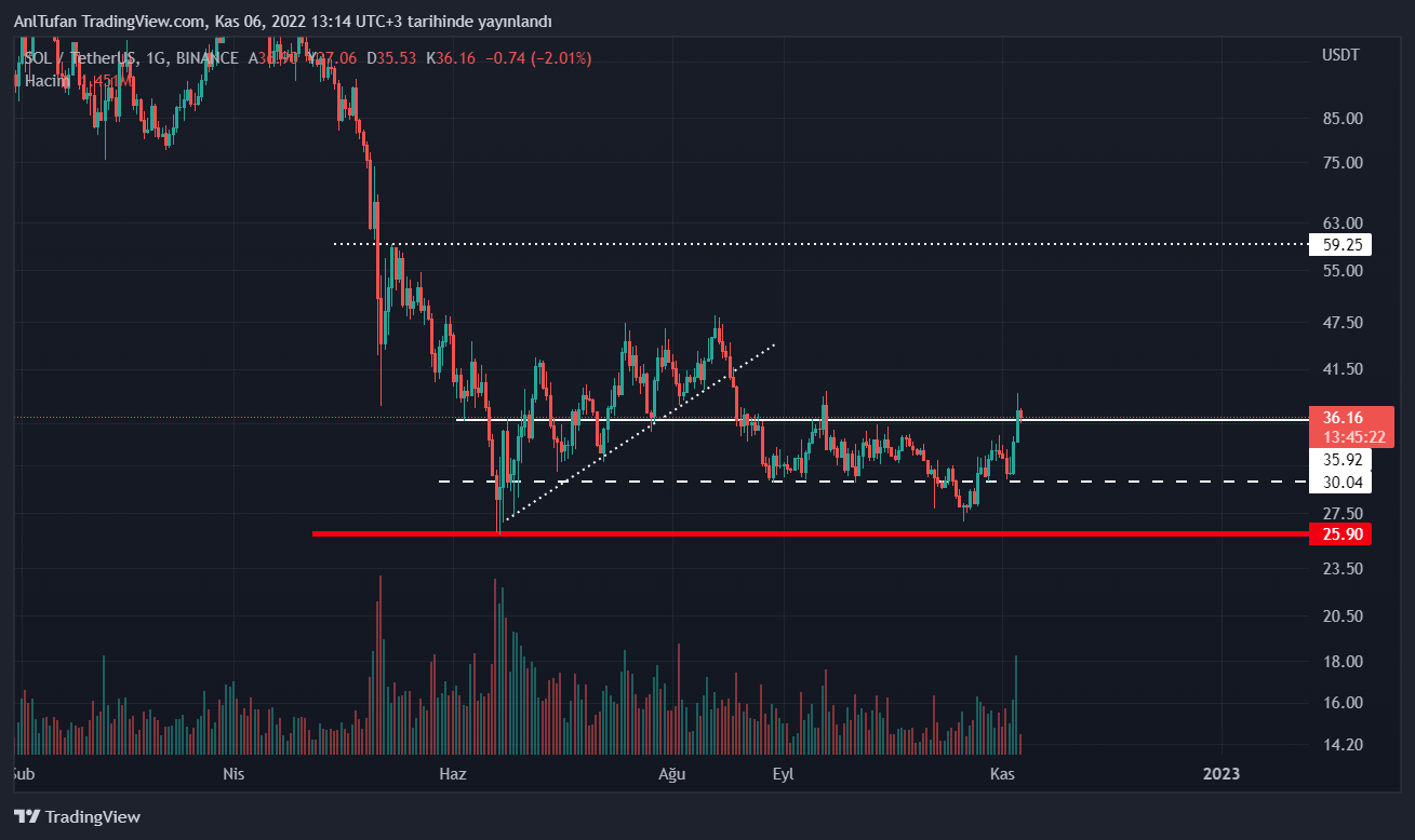 Şuan itibariyle kritik seviyenin hemen üzerinde yer alan SOL, dün itibariyle 35.92 dolar direncini kırmayı başarmıştı.