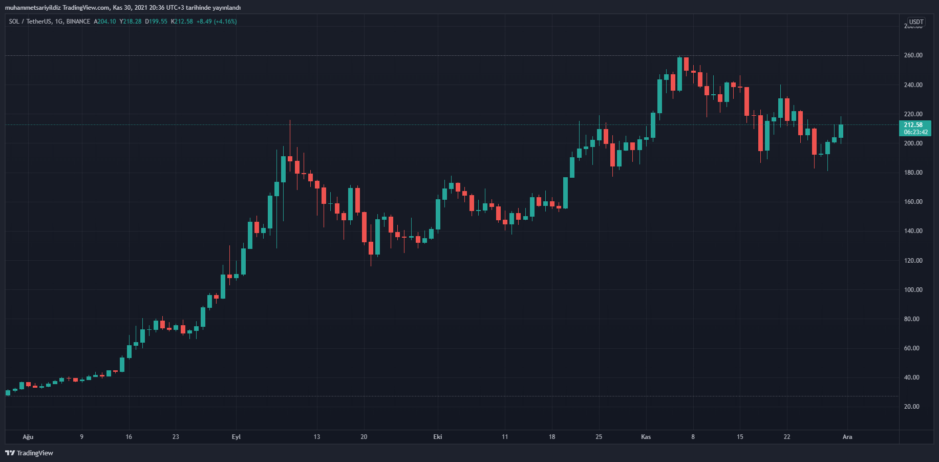 Solana fiyatı son 24 saat içerisinde %0,2 yükseliş elde etse de aslında sert düşüşün izlerini silmeye devam ediyor. SOL, 212 doların üzerine yeniden çıktı ve 210 dolar direncini de devirerek 250 doları hedeflediğini gösterdi. Ancak Grayscale’in verdiği bu haber uzun vadede 300 doların görülmesini sağlayabilir.