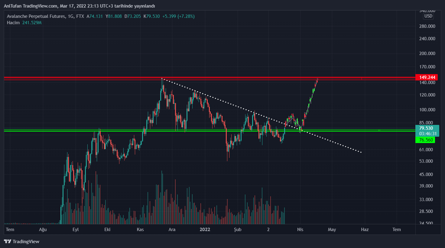 Haberimizin yazıldığı esnada 79.40 dolar seviyelerinde işlem gören AVAX, düşen trendini kırmaya çok yakın bir konumda bulunuyor.