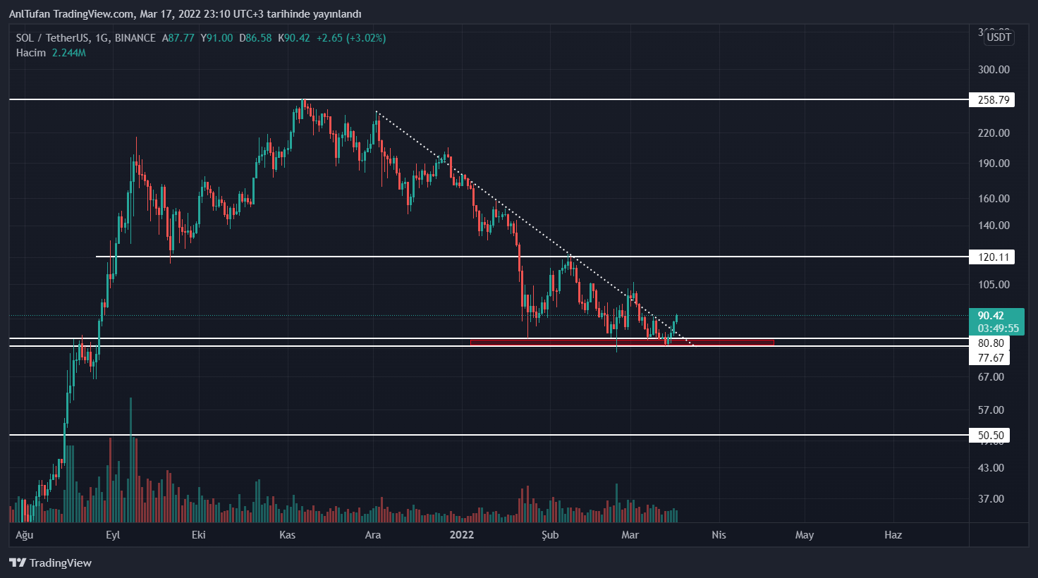 Yayın saati itibariyle 90 dolar seviyelerinde konumlanan SOL, dün itibariyle düşen trendini kırmayı başardı.