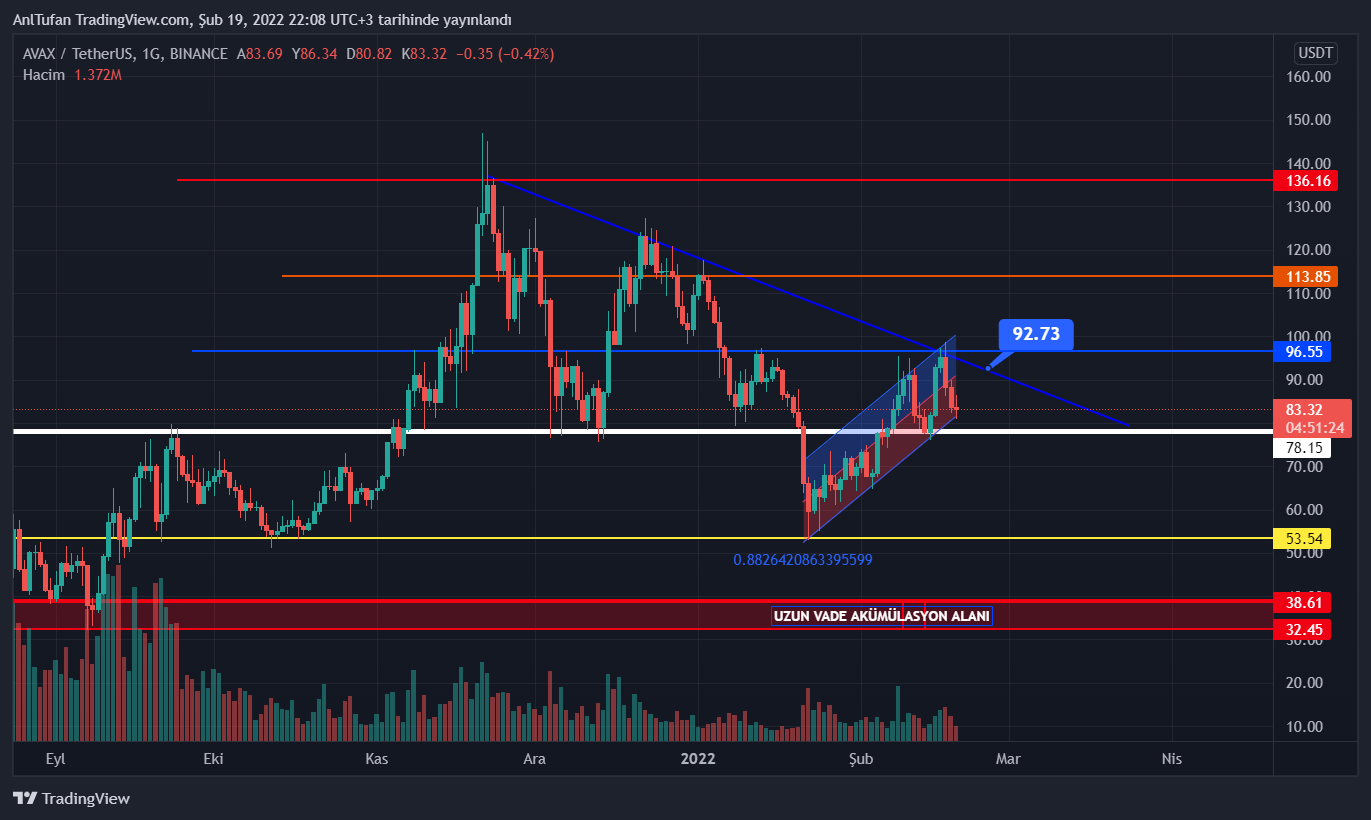 Yayın saati itibariyle 83 dolar seviyelerinde bulunan AVAX, Solana grafiğine nazaran çok daha fazla bullish patern bulunduruyor.