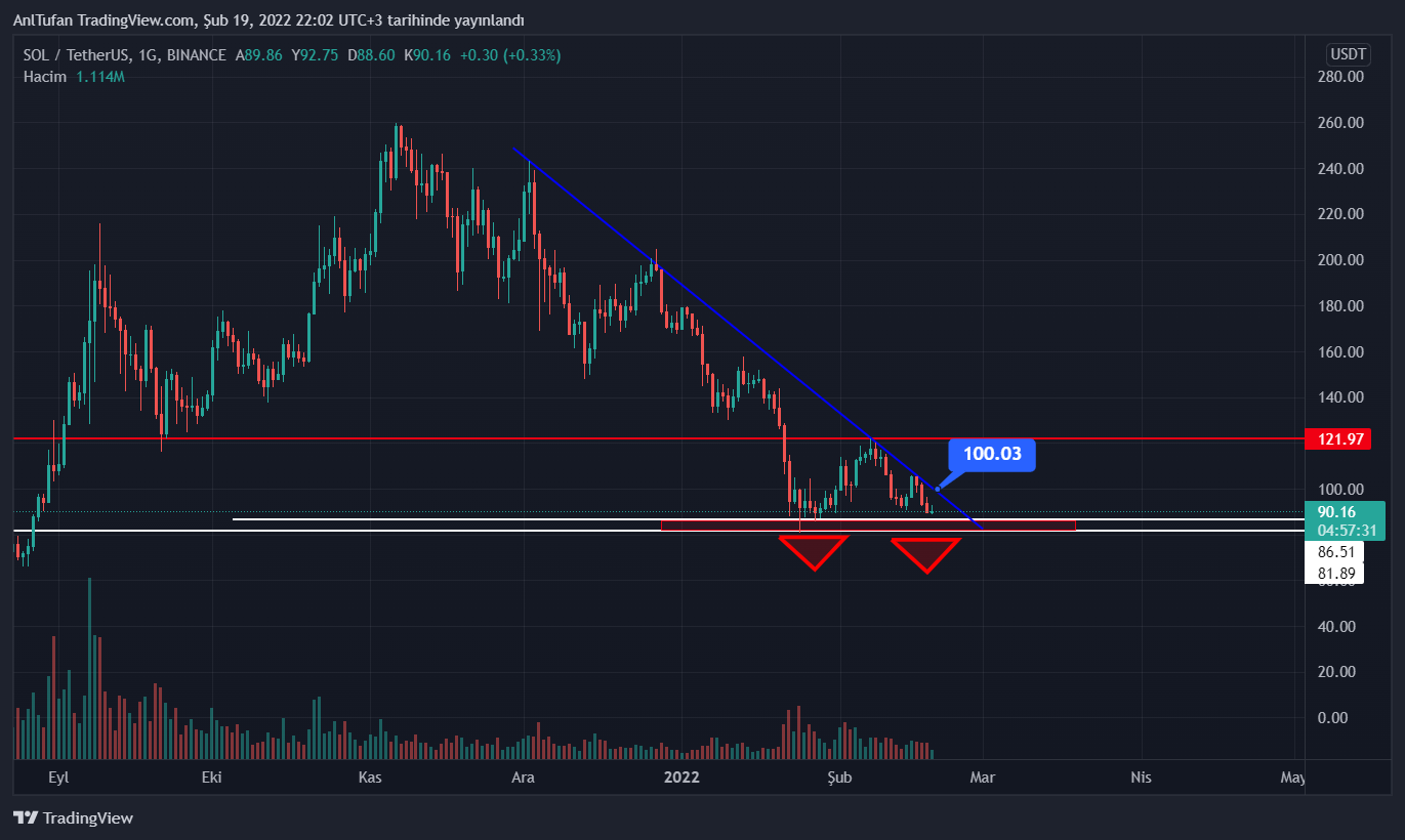 Yayın saati itibariyle 90 dolar seviyelerinde bulunan Solana, an itibariyle major destek seviyesinin üzerinde yer alıyor.
