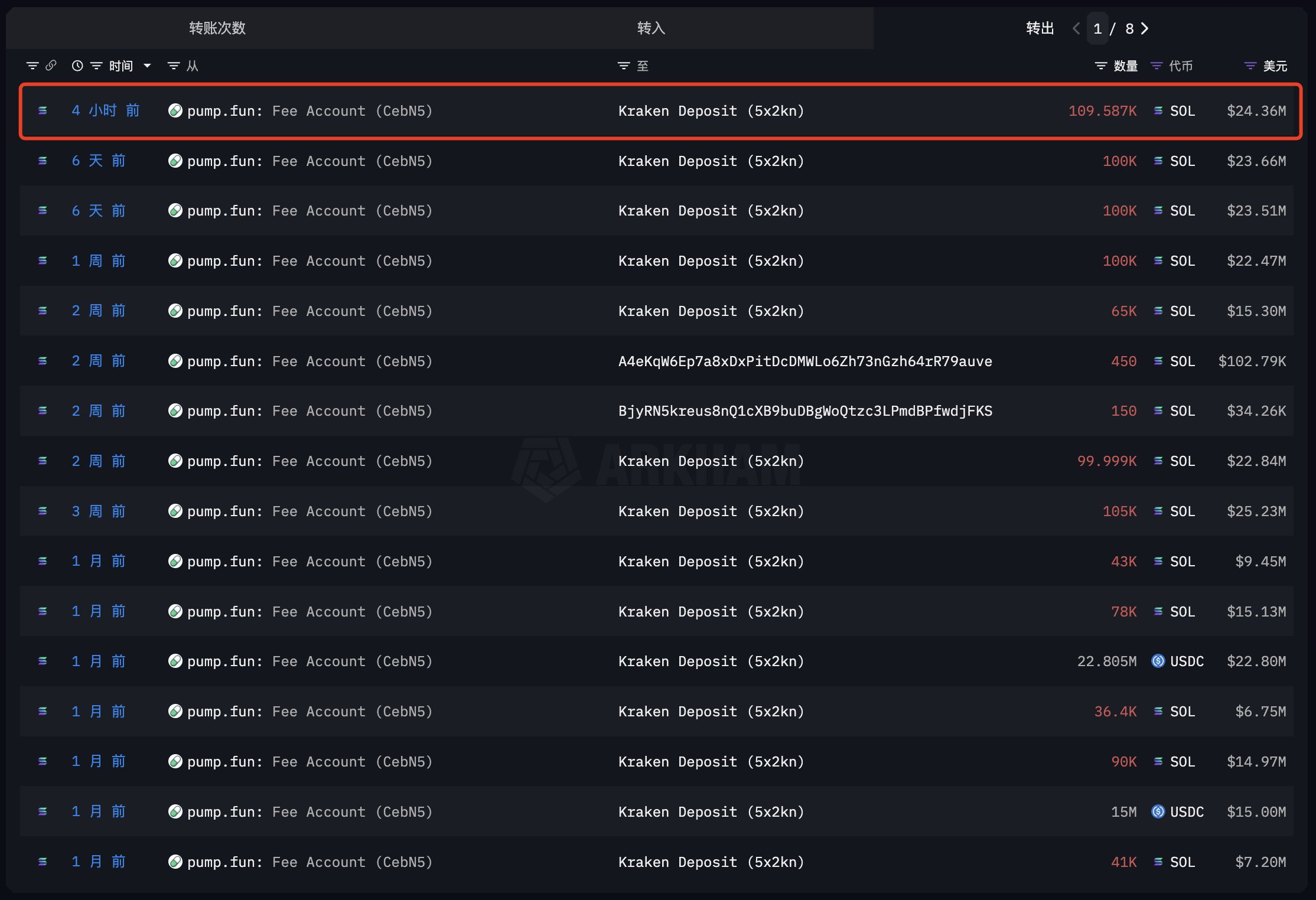 “Pump-Fun kısa bir süre önce satış yapmak için Kraken’e toplamda 109,587 adet SOL (24.36 milyon dolar değerinde) daha transfer etti.