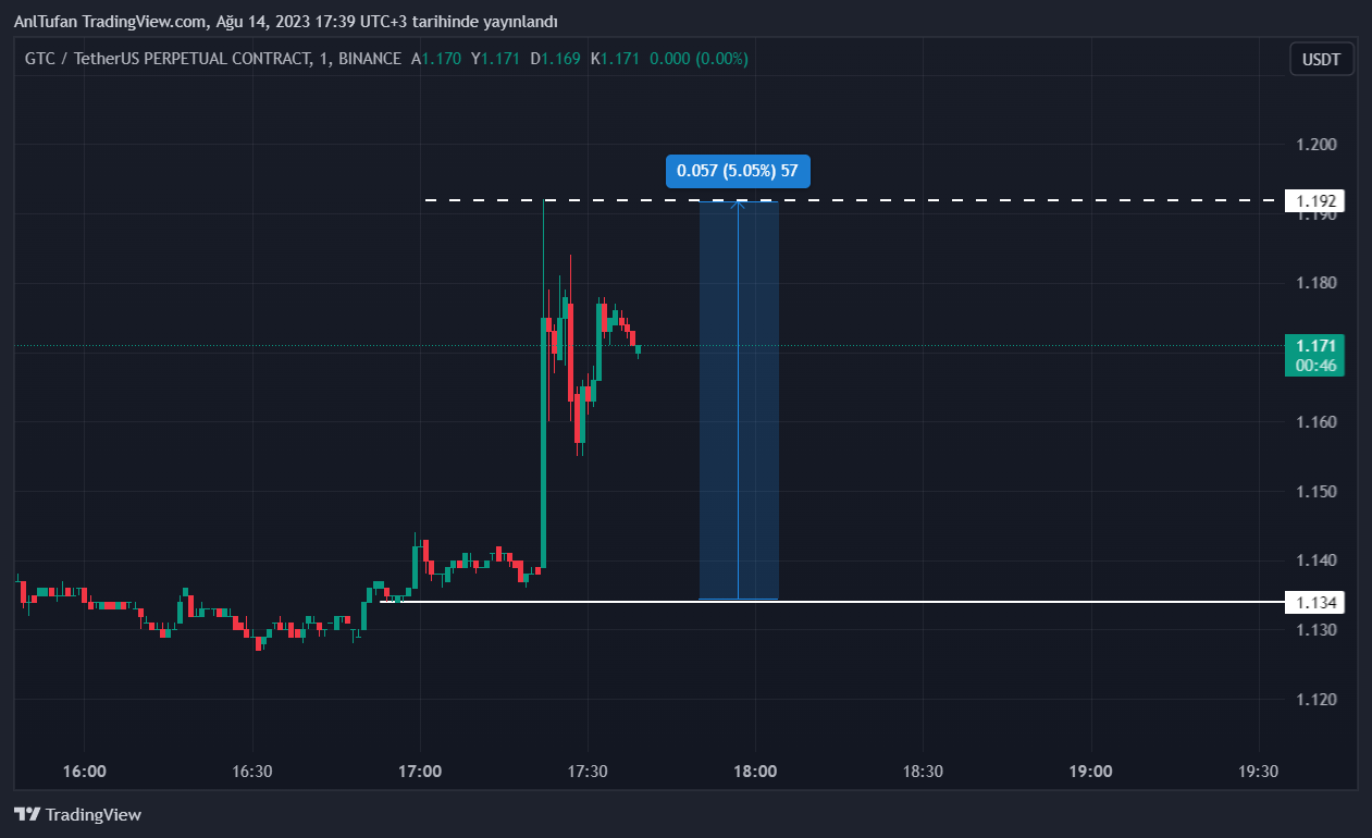 Bu gelişme sonrasında GTC isimli altcoin yüzde 5’lik bir sıçrama gerçekleştirdi.