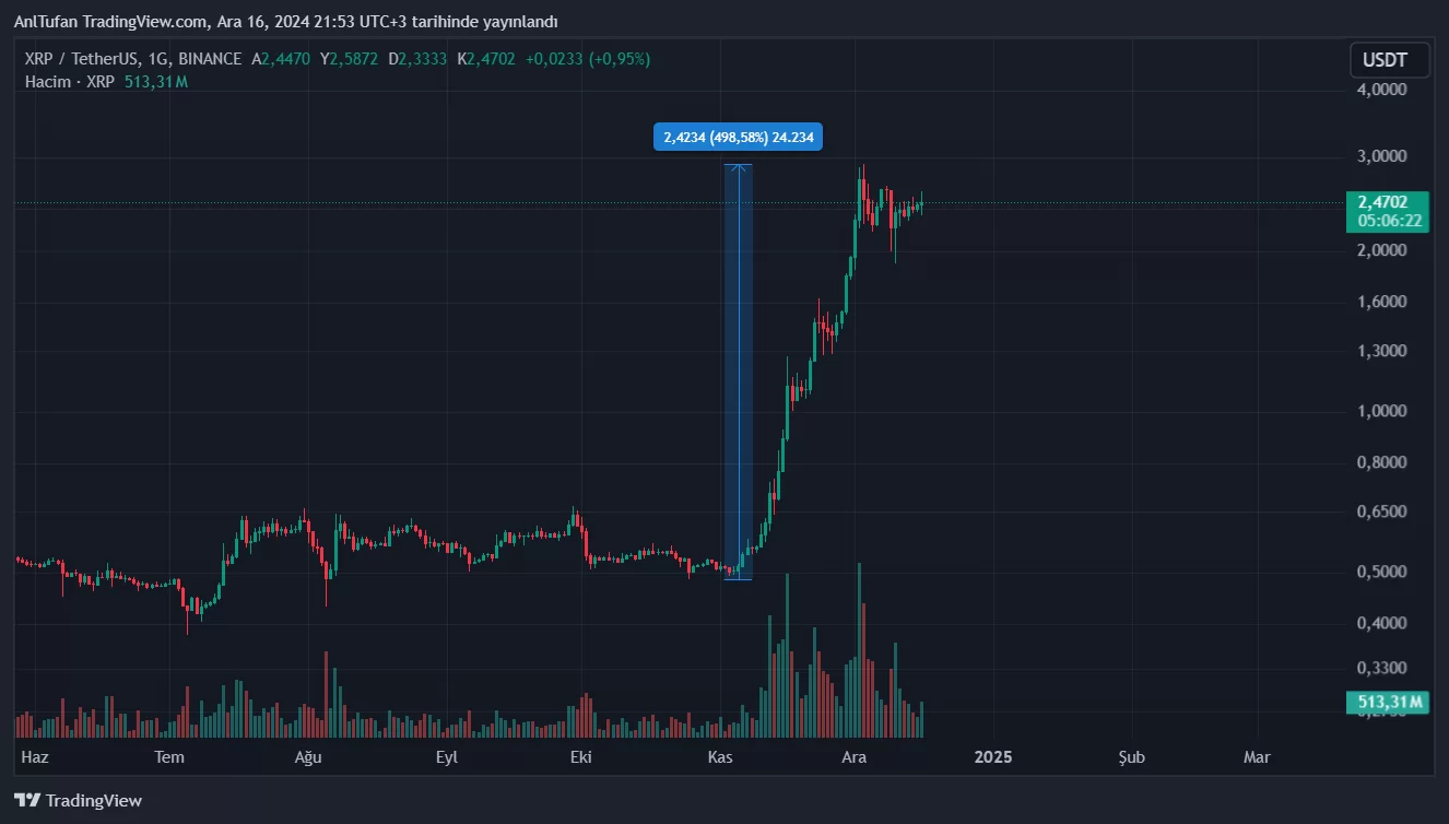 Önümüzdeki yıl itibariyle ABD’de spot XRP ETF’lerinin onaylanması, Ripple’daki rallinin daha da alevleneceğini unutmamak gerek.