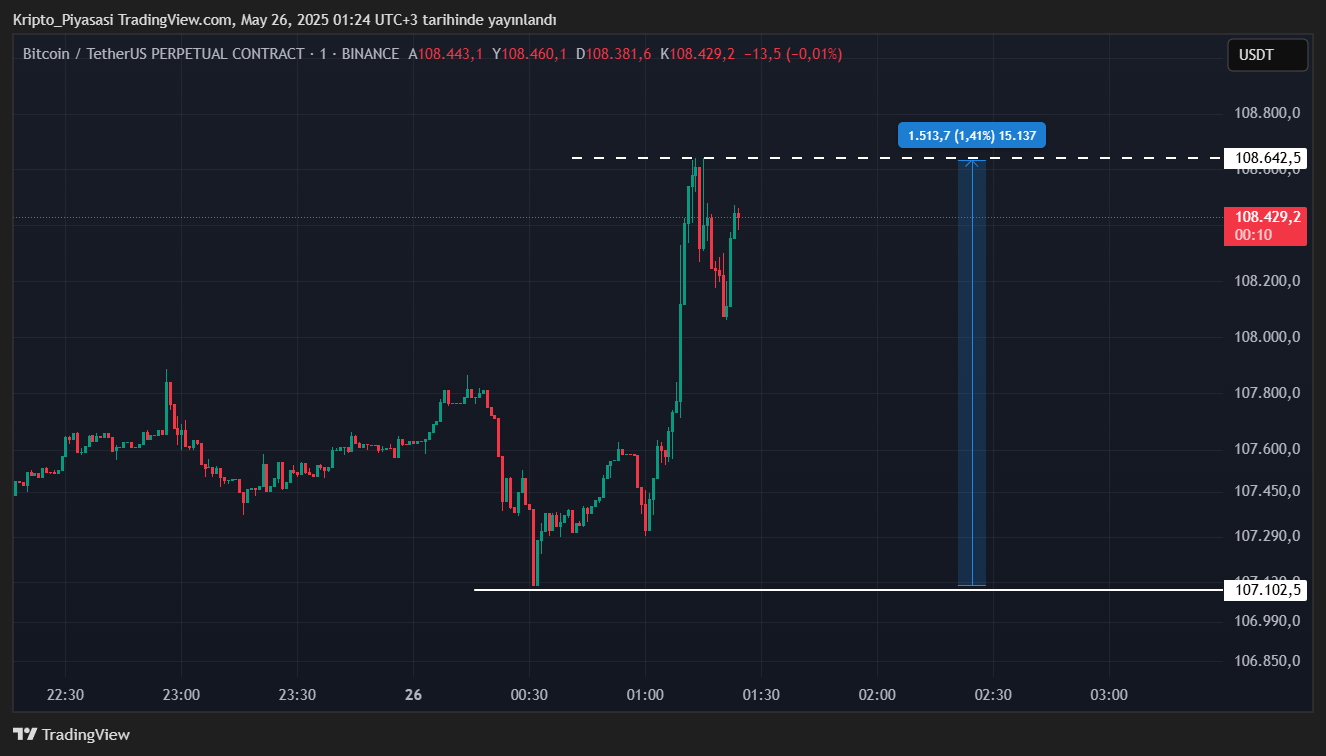 ABD Başkanı Donald Trump’ın bu güzel haberi sonrasında lider kripto para birimi Bitcoin (BTC) 108.600 dolar seviyelerine kadar yükseliş yaşadı. Ayrıca ABD borsaları vadelilerinin de yükselişlerle açıldığı görüldü.