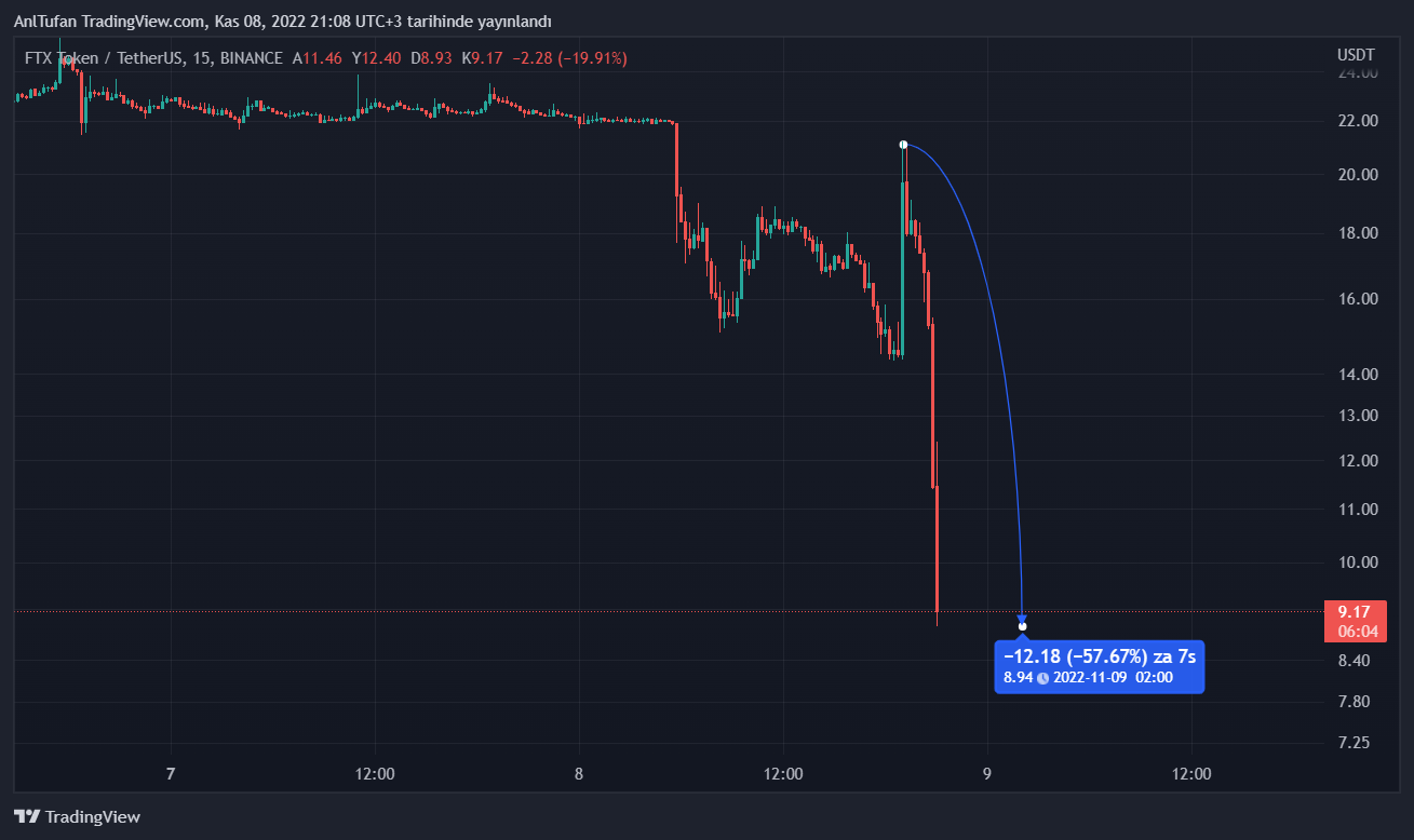 Bu hamle ile birlikte sert bir şekilde çöküş yaşayan FTT, an itibariyle 8.94 dolara kadar gerileyerek son saatlerin zirvesinden yüzde 60’a yakın bir düşüş yaşamış durumda.