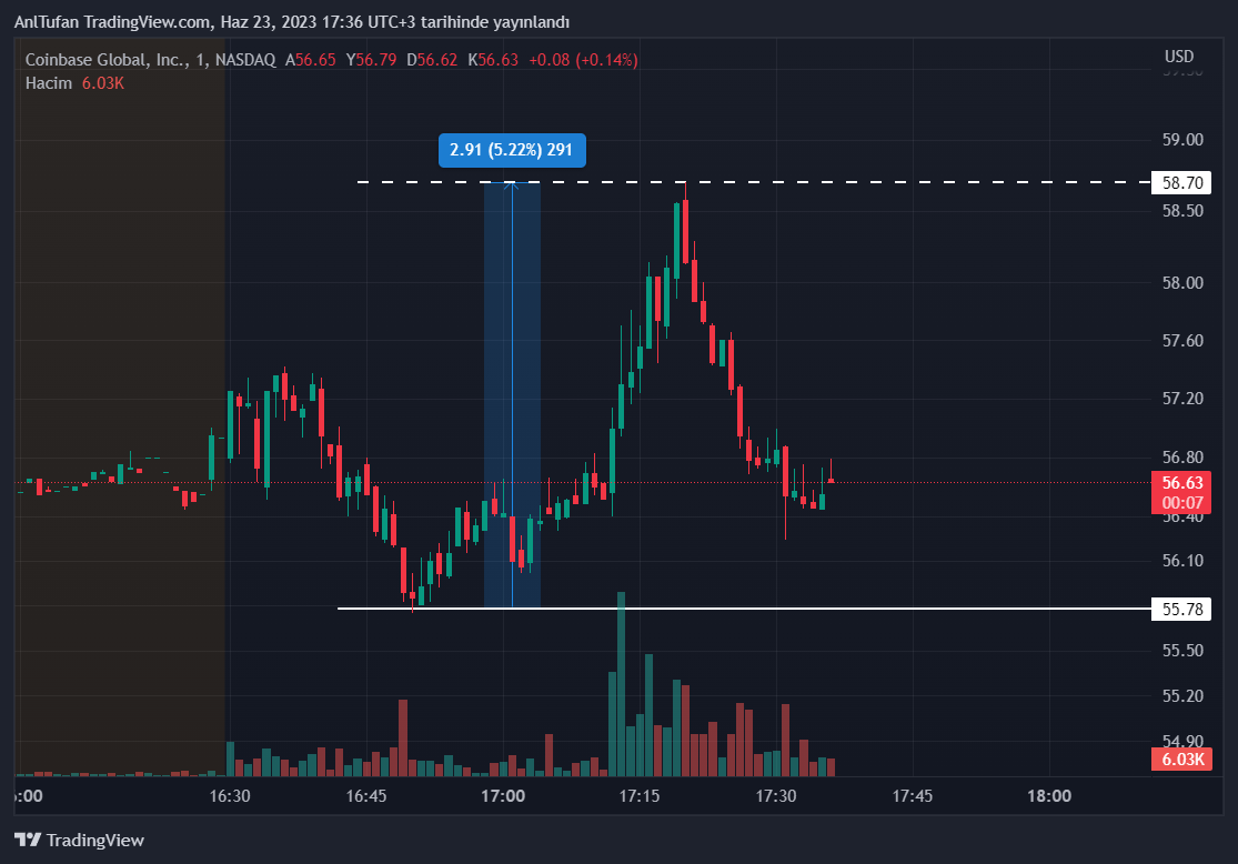 58.70 dolar seviyelerinde zirve yapan Coinbase hisseleri (COIN), an itibariyle ise 56.74 dolar seviyelerine gibi gözüküyor.