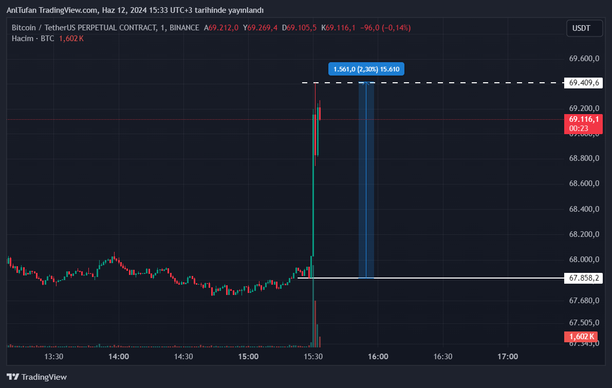 Bu son veriler ile birlikte Bitcoin 69.400 dolara kadar %2’lik bir yükseliş yaşarken, birçok altcoin’de %5’lik sıçramalar gerçekleştirdi.