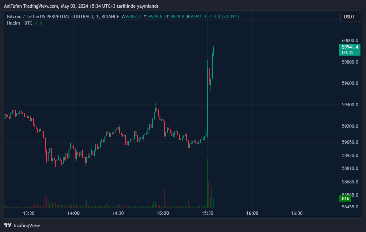 Bu son gelen veriler ile birlikte ABD dolar endeksinde (DXY) düşüşler yaşanırken, Bitcoin’in de 60 bin dolar seviyelerine kadar tırmandığı gözlemlendi.