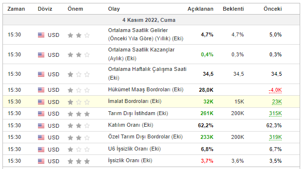 Her ne kadar FED’in faiz artışlarına rağmen Tarım Dışı İstihdam verisi beklentilerin üzerinde gelse de, işsizlik oranları da beklentilerin üzerinde gelmiş durumda.