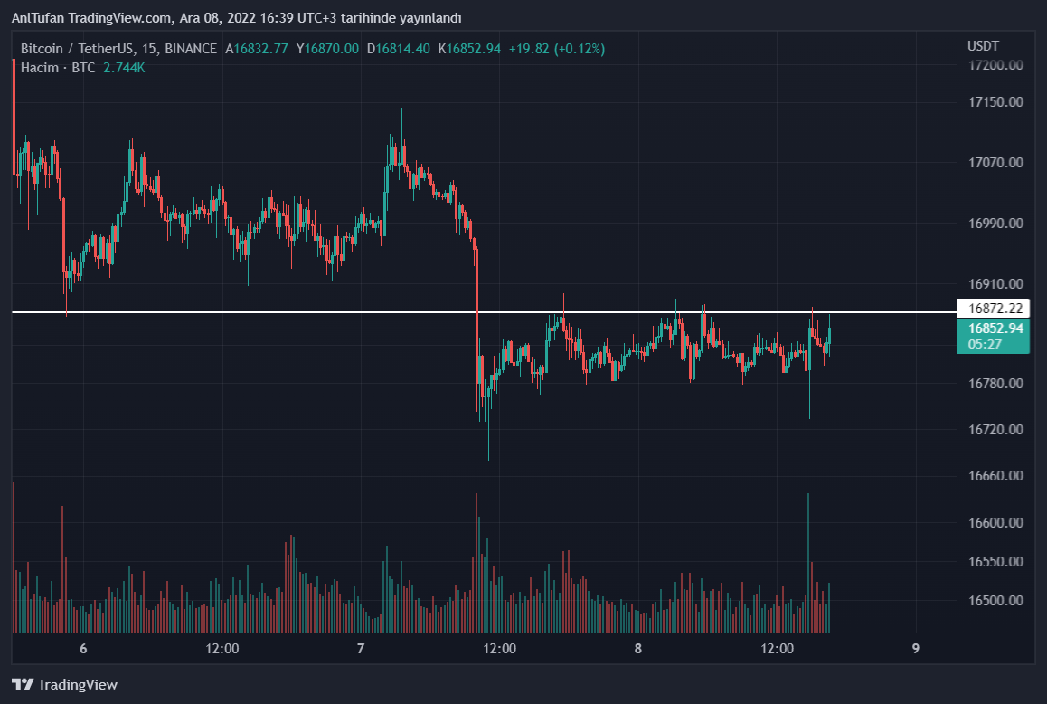 Olumsuz bir verinin gelmemesi şimdilik Bitcoin’in tekrardan direnç noktası olan 16.872 dolara kadar yükselmesini sağladı.