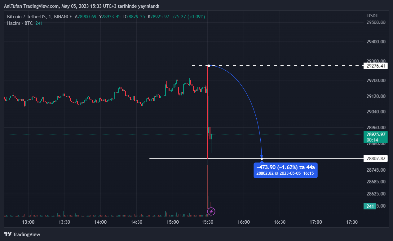 Lider kripto para birimi Bitcoin (BTC) son dakikalarda volatil bir şekilde değer kaybetmeye başladı. Kısa bir süre içerisinde yüzde 2’ye yakın düşüş yaşayan BTC, yatırımcıların dikkatini çekti.