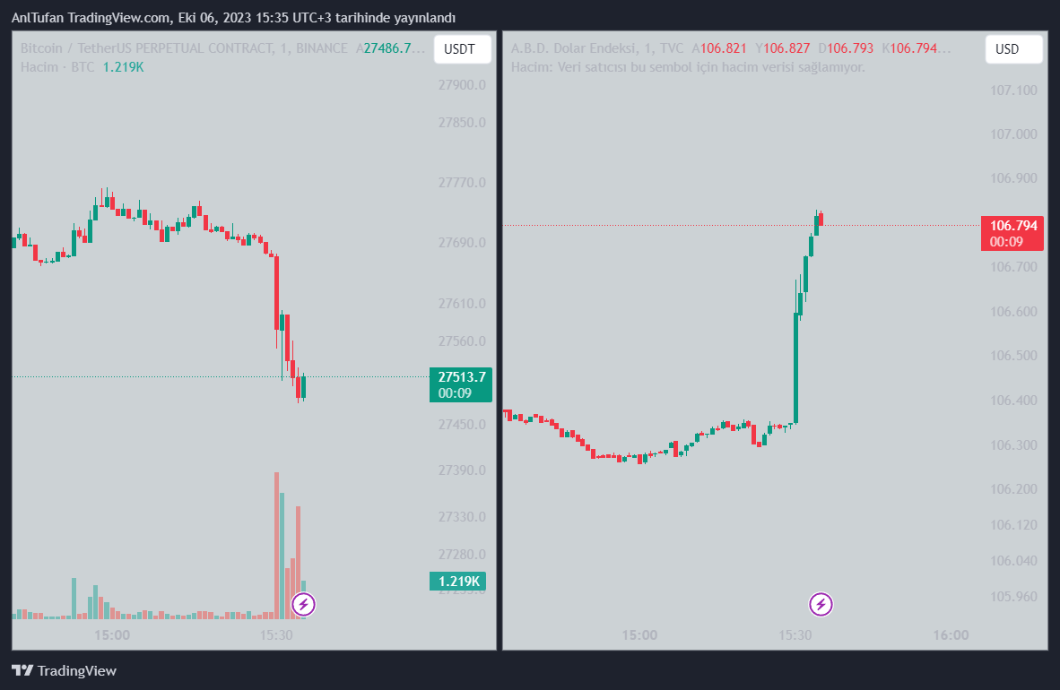 ABD borsaları, altın, Bitcoin ve altcoin’ler son gelen bu verilerin ardından düşüş yaşarken, ABD dolar endeksinin (DXY) sert yükseliş yaşadığı görüldü.