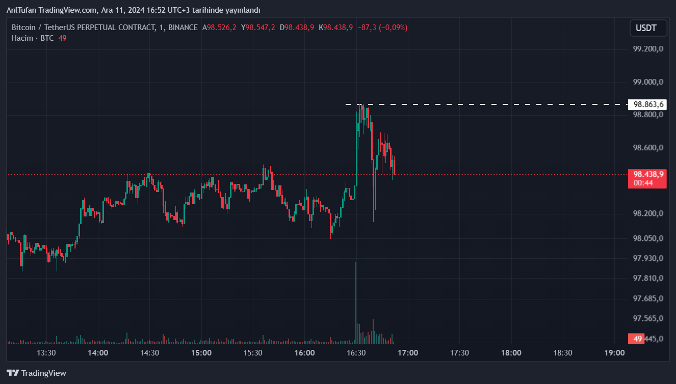 Bu verilerden sonra lider kripto para birimi Bitcoin‘de (BTC) bir yükseliş yaşansa da, BTC’nin yükselişleri koruyamadığı görüldü.
