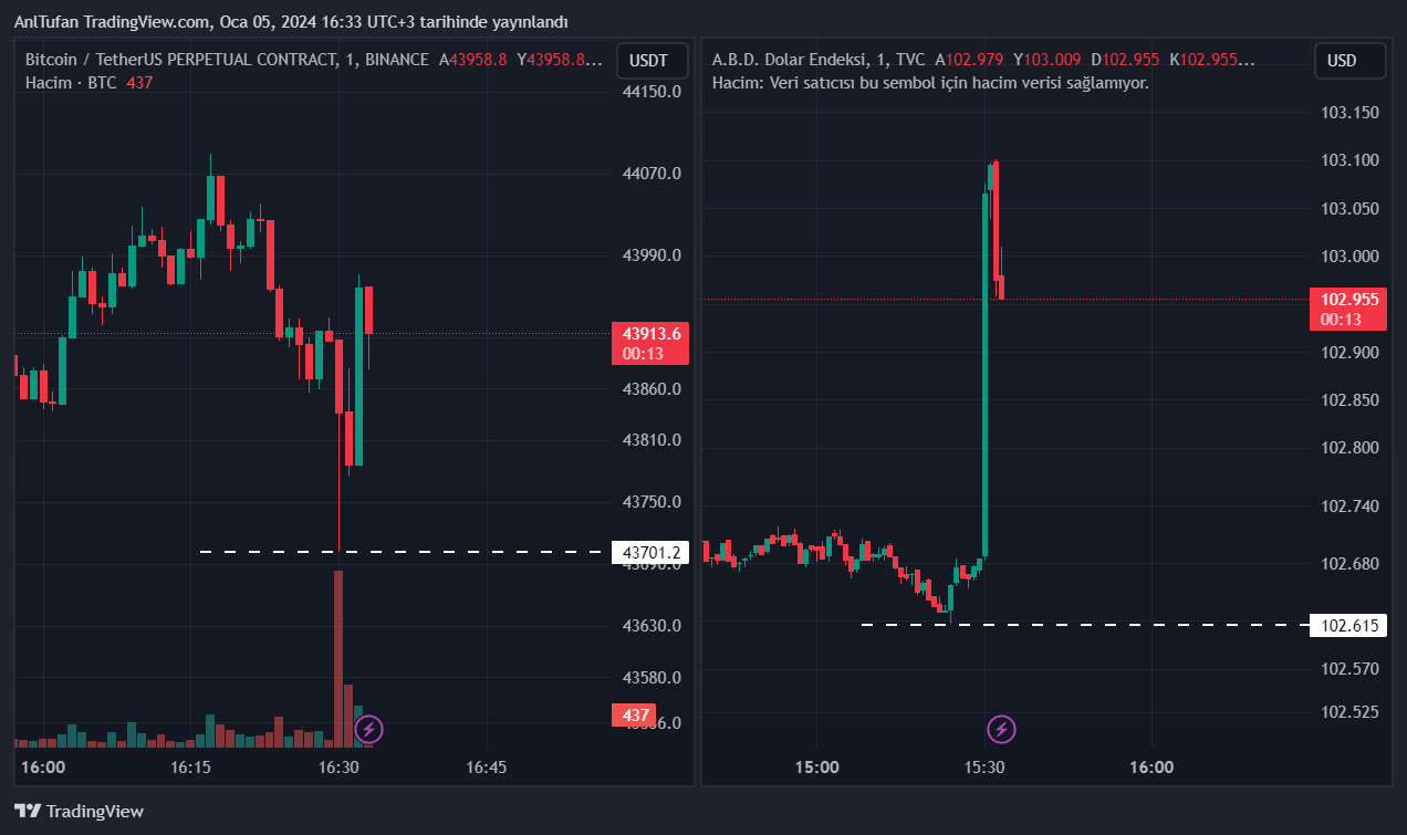 ABD dolar endeksine (DXY) baktığımızda, son gelen bu veri ile birlikte sert bir yükseliş yaşadığı görülüyor. DXY’deki artışların devam etmesi, kripto piyasasını kötü etkileyebilir.