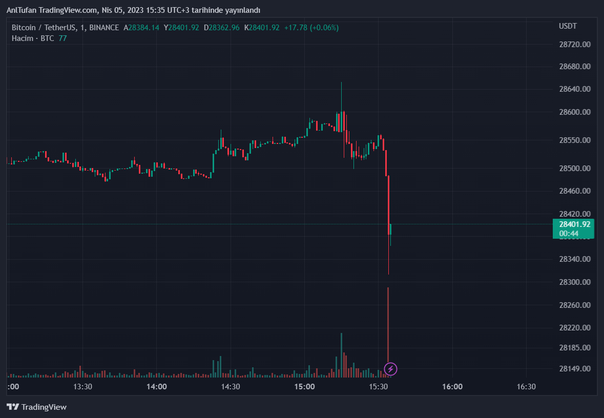 ABD’de Tarım Dışı İstihdam Değişikliği verisinin beklentilerin altında gelmesi her ne kadar Bitcoin’de ilk etapta bir yükseliş getirse de, dakikaların ilerlemesiyle birlikte düşüş yaşandı.