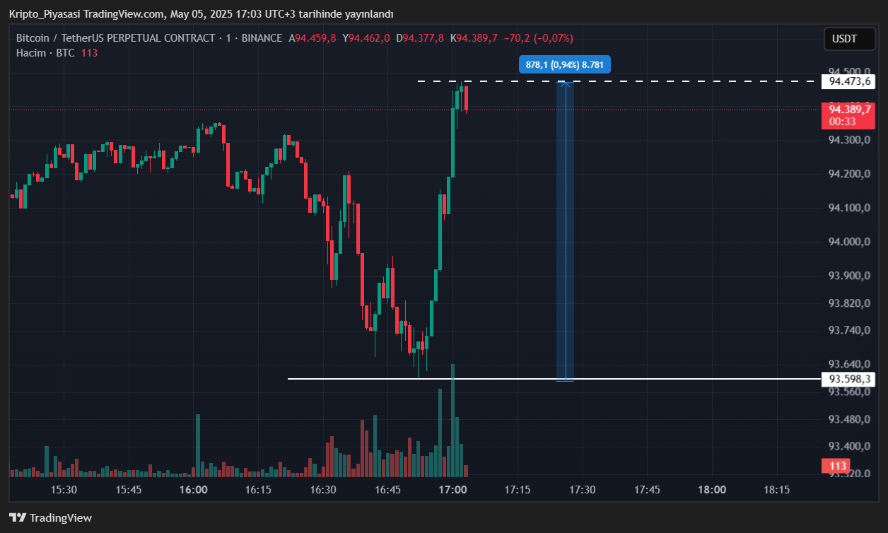 Bu son gelişmeler neticesinde yükseliş yaşayan Bitcoin (BTC), son dakikalarda %1’lik bir sıçrama yaptı. İlerleyen dakikalarda BTC’deki volatil hareketlerin devam edebileceğini unutmamak gerek.