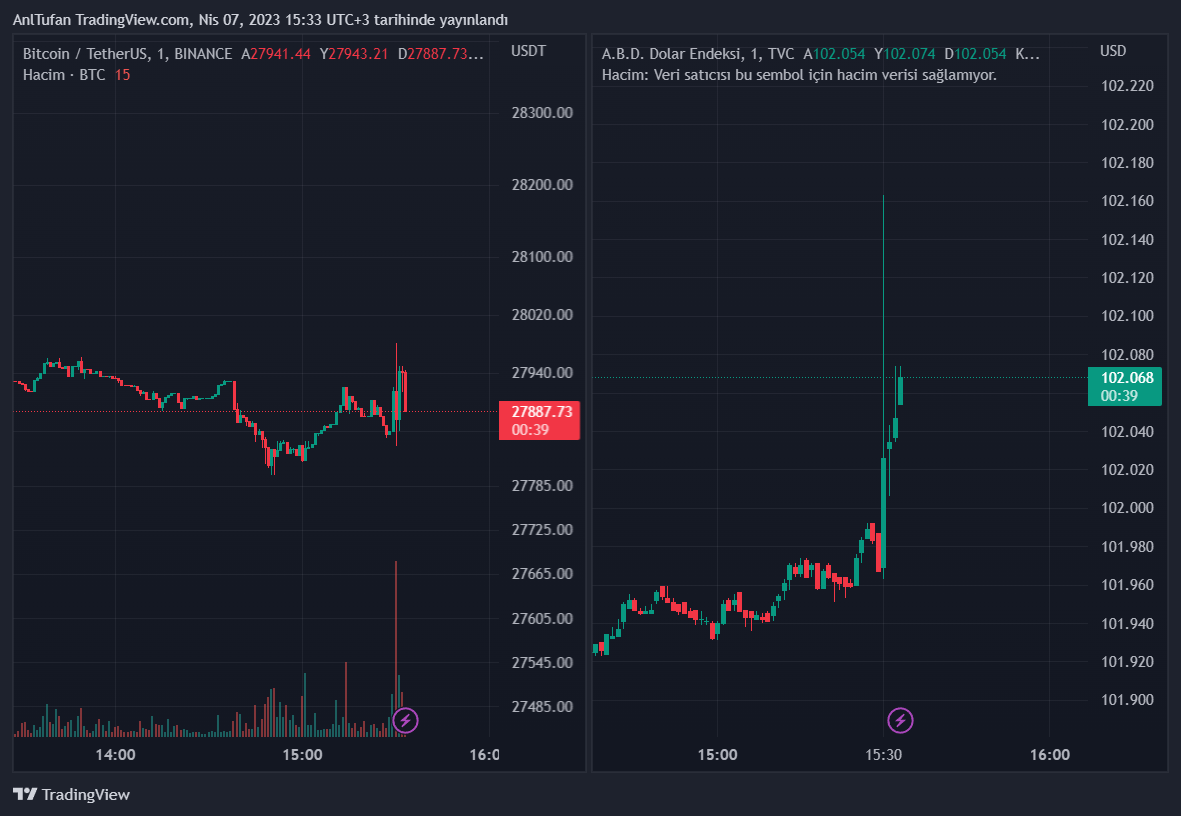 İlerleyen saatlerde BTC ve DXY’nin volatil hareketler sergilemeye devam edeceği tahmin edilmekte.