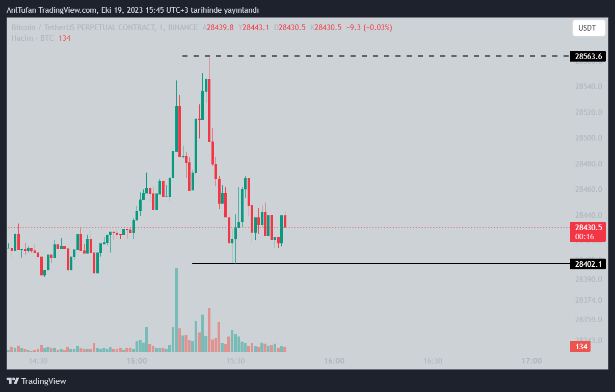 Verilerin fiyatlandığı gibi beklentilerin altında gelmesiyle birlikte 28.400 dolarda akümüle olan BTC, önümüzdeki saatlerde bu seviyeyi kaybetmesi halinde 28 bin dolar seviyelerine kadar bir düşüş yaşayabilir.
