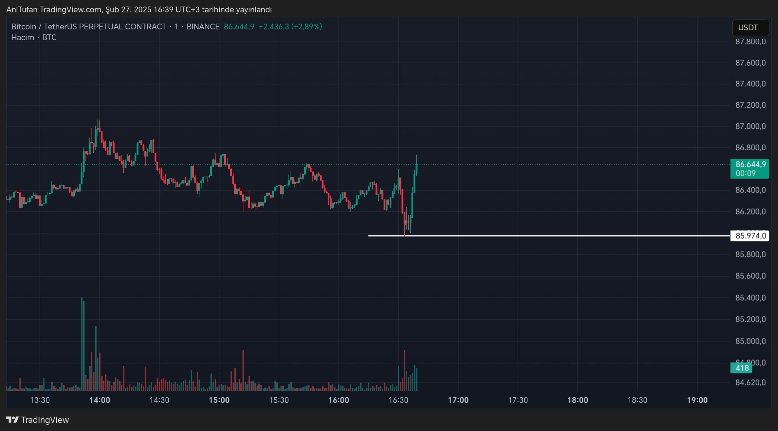 Bu son gelen verilerin ardından Bitcoin (BTC) 85.970 dolar seviyelerine kadar gerilemiş olsa da, ilerleyen dakikalarda toparlandı ve düşüşlerin hepsini telafi etmeyi başardı.