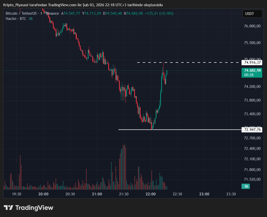 ABD – İran çatışmaları nedeniyle ciddi düşüşler yaşayan lider kripto para birimi Bitcoin (BTC) ise bu haber ile birlikte 73 bin dolarda dip yaptı ve 75 bin dolara kadar bir sıçrama gerçekleştirdi.