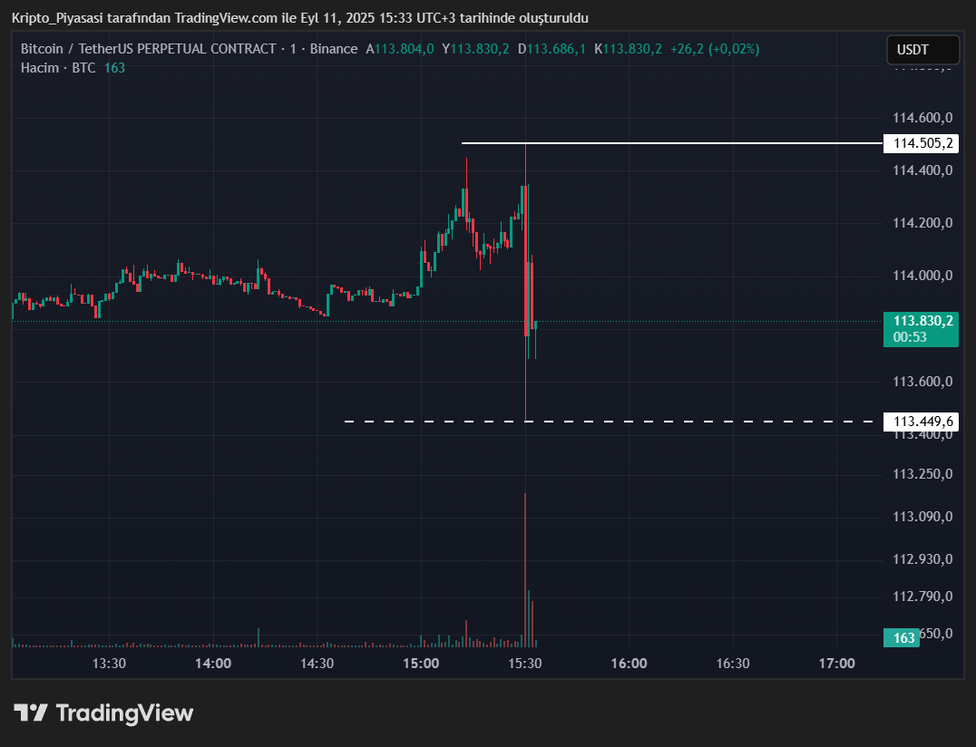 ABD enflasyon verilerinin beklenti doğrultusunda açıklandığı görüldü. Buna rağmen lider kripto para birimi Bitcoin (BTC) ufak bir satışla karşı karşıya kalarak 113.500 dolar bandına kadar geriledi.