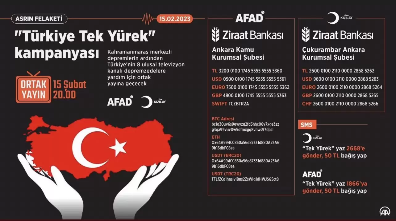 Kripto bağışları haricinde bankalara havale ve sms yolu ile de depremzedeler için bağışlar toplandığı gözlenmekte. AFAD’a kripto bağışı yapmak isteyen okurlarımız, yukarıda yer alan tweet’deki görsele göz atabilirler.