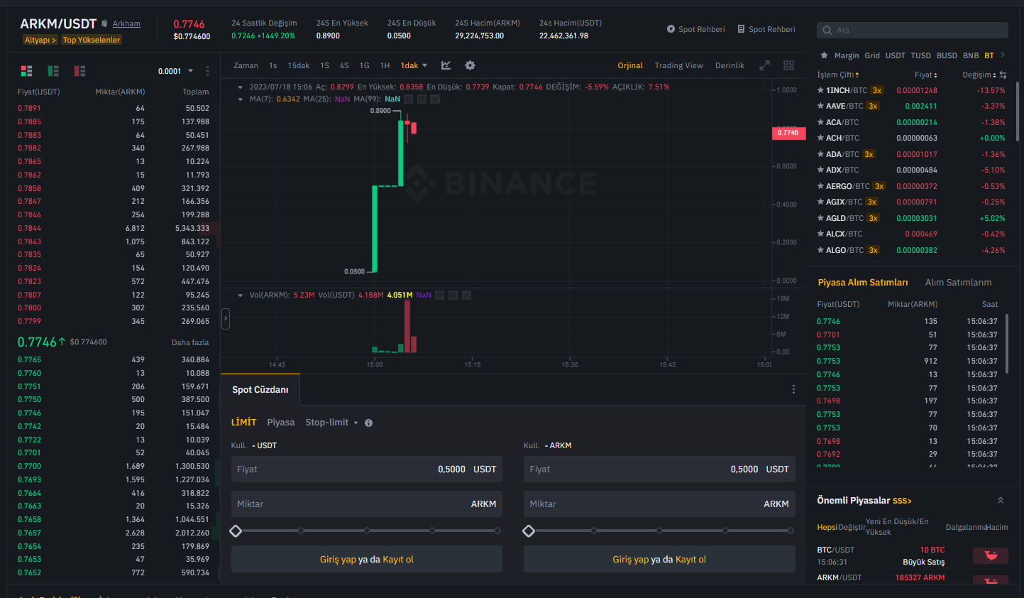 Binance borsasında geçtiğimiz dakikalarda alım satımı başlayan ARKM, kısa bir süre içerisinde volatil yükselişler yaşamayı başardı.