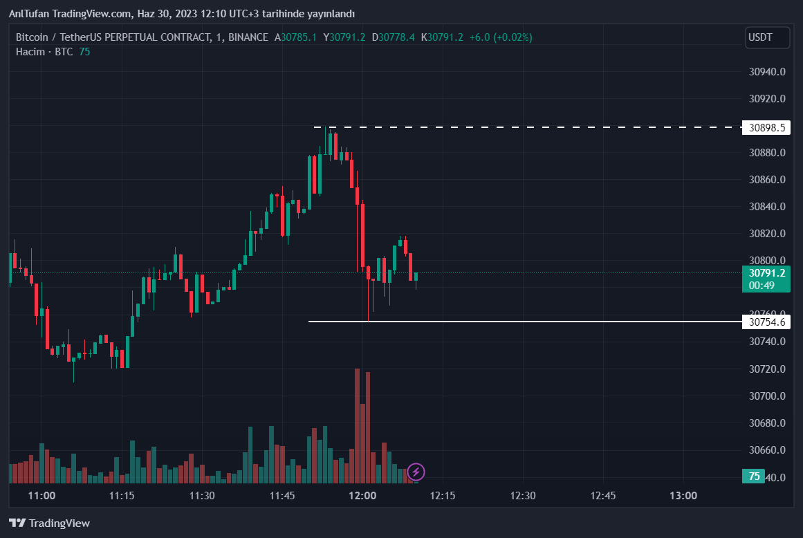Anlık olarak 30.900 dolar seviyelerinden 30.750 dolar seviyelerine gerileyen BTC, şuan itibariyle 30.800 dolar seviyelerinden işlem görüyor.