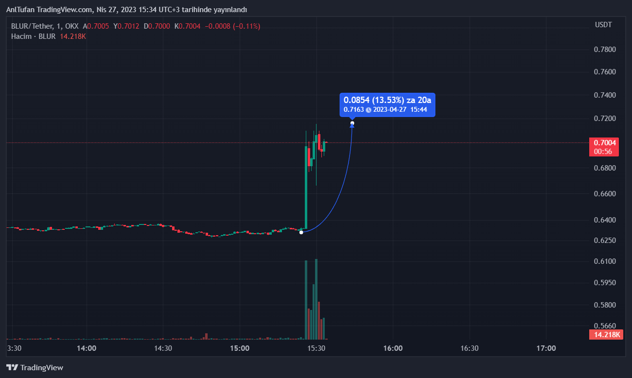 Binance’in BLUR isimli altcoin’i vadeli işlemlere eklemesi, haliyle bu altcoin’in volatil bir şekilde yükseliş yaşamasını sağlamış gibi gözüküyor. Binance’in BLUR’u vadeli işlemlere eklemesi, popüler altcoin’in yüzde 15’e yakın değer kazanmasını sağladı.