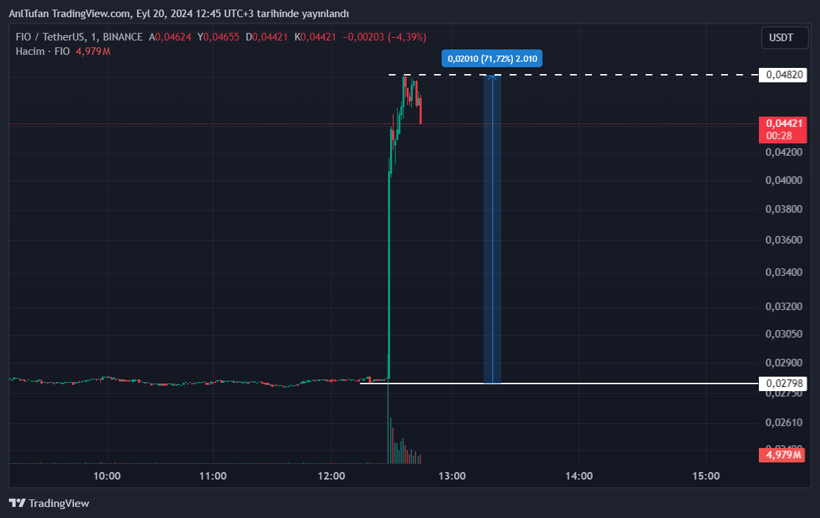 Son gelen vadeli listeleme hamlesi ile birlikte FIO fiyatında sert bir sıçrama meydana geldi. FIO son dakikalarda %70 oranında artış yaşayarak kripto piyasasının gündemine oturdu.