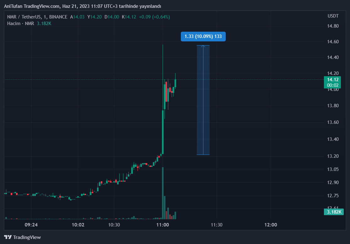 Dev kripto para borsası Binance’in bu kararı sonrasında dakikalar içerisinde yüzde 10’luk bir sıçrama yapmayı başaran NMR, yatırımcıların dikkatini üzerine çekmeyi başardı.