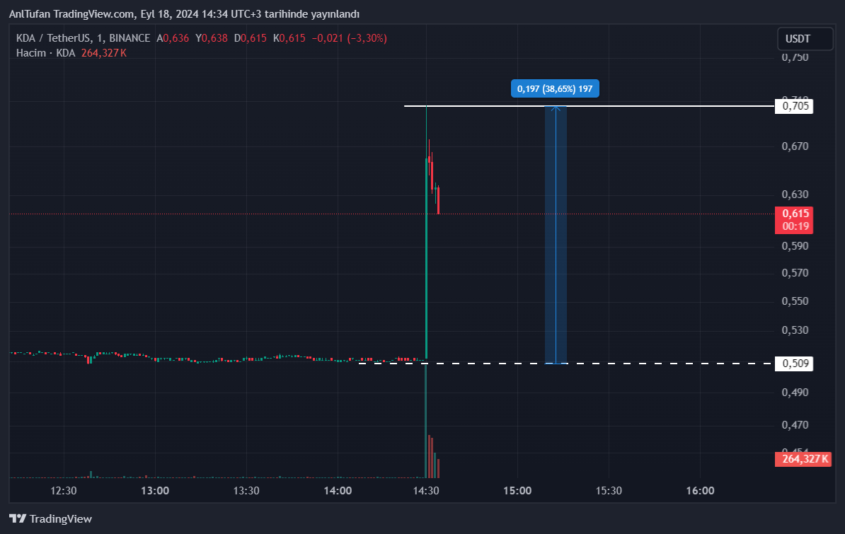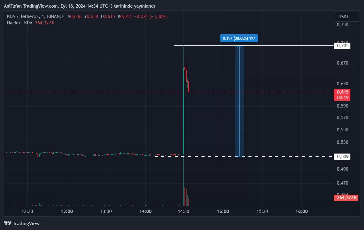 Son gelen bu duyuru ile birlikte KDA fiyatında da yükselişler meydana geldi. Dakikalar içerisinde %40’a yakın bir artış yaşayan KDA, dikkatleri üzerine çekmeyi başardı.
